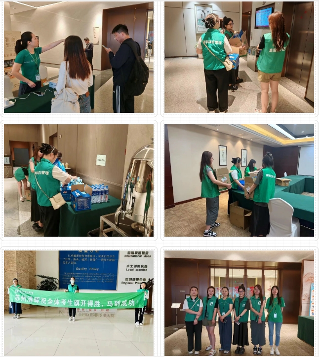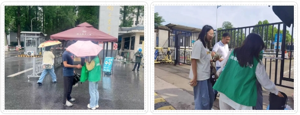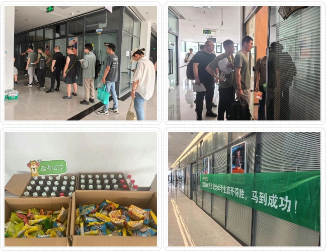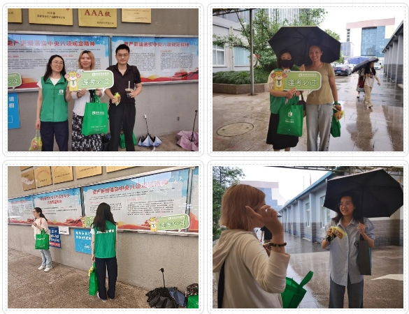 考试当日,身穿清晖绿文化衫的送考小分队奔赴各个考试场地,提前做好应援准备。在考场外布置考试应援点,免费提供“能量补充包”给有需要的学员,为学员补充能量,帮助大家在考试中有一个好的状态。同时,送考小分队也耐心地协助学员检查进场资料,并及时提供支持,全力做好考点服务保障工作,助大家顺利考试。