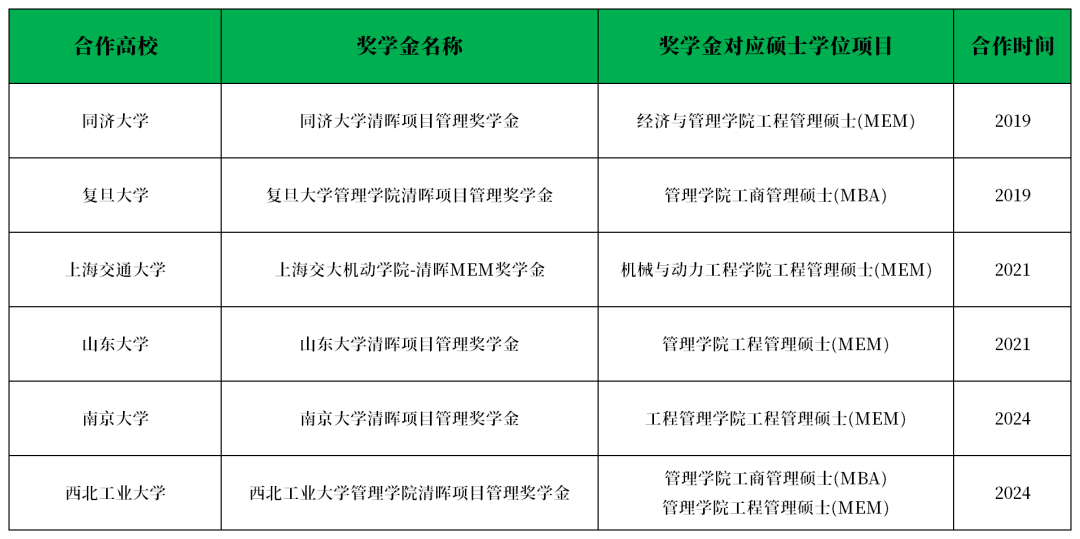 * 清晖奖学金合作高校及相对应硕士学位项目今后若有增加,本奖学金奖励办法仍适用