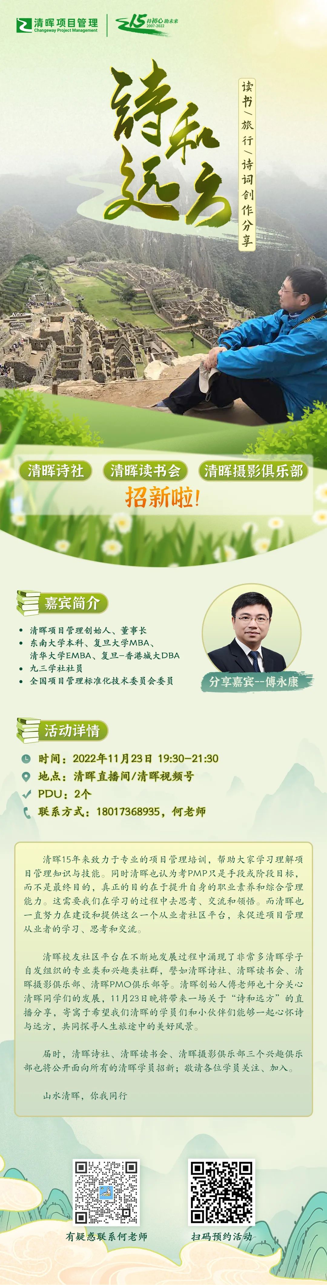 清晖15年来一直致力于专业的项目管理培训,帮助大家理解掌握项目管理知识与技能的同时,也在倡导大家努力提升自身的综合素养和能力。
