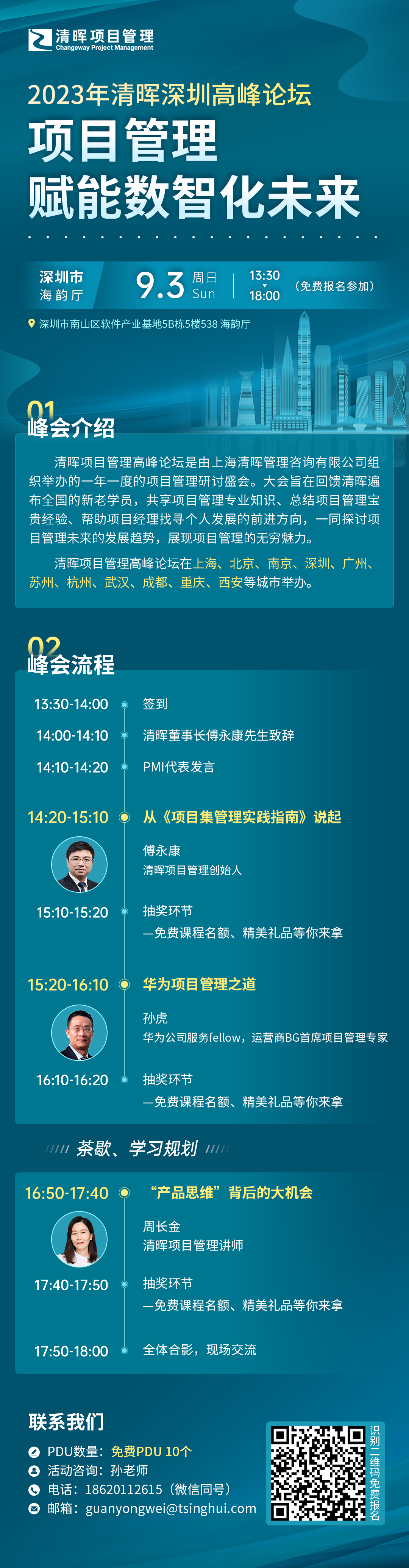 清晖项目管理高峰论坛在上海、北京、南京、深圳、广州、苏州、杭州、武汉、成都、重庆、西安等城市举办。