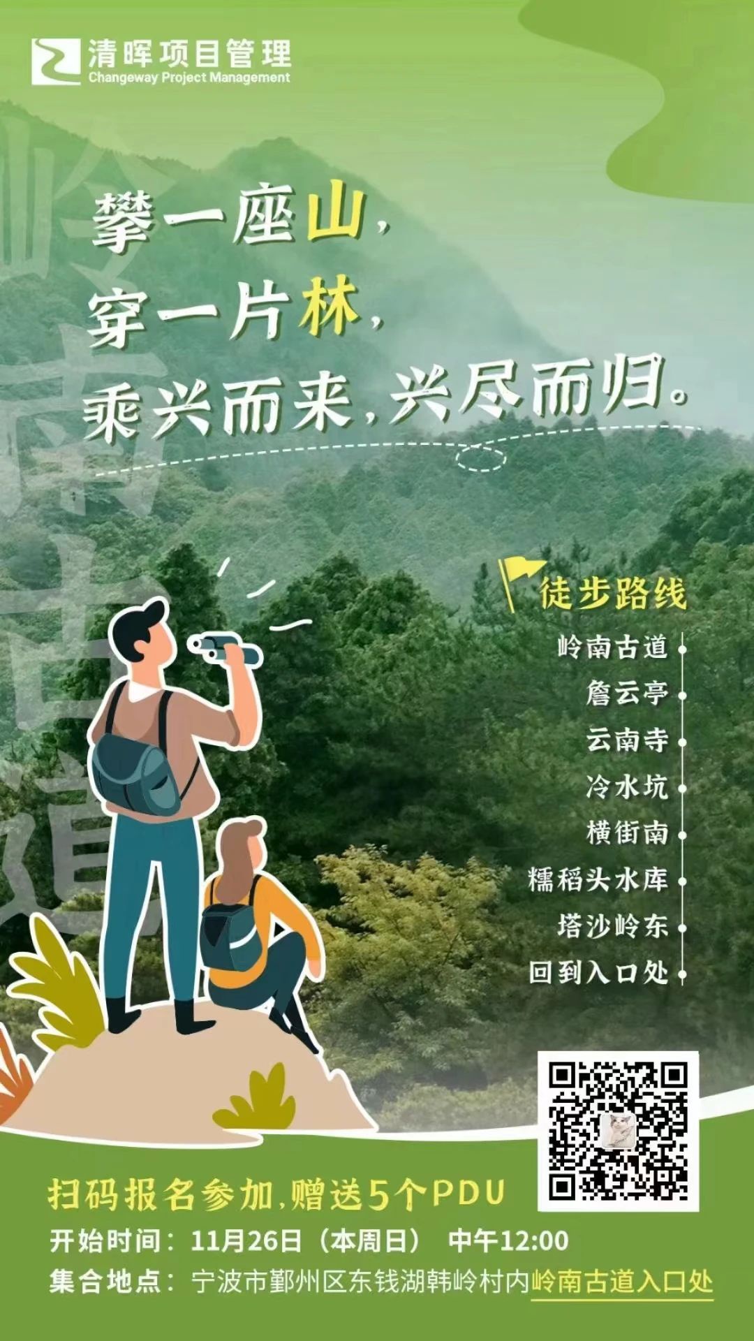 户外徒步,攀一座山,穿一片林。乘兴而来,兴尽而归。清晖宁波社区户外徒步运动即将开启,期待你的参与~