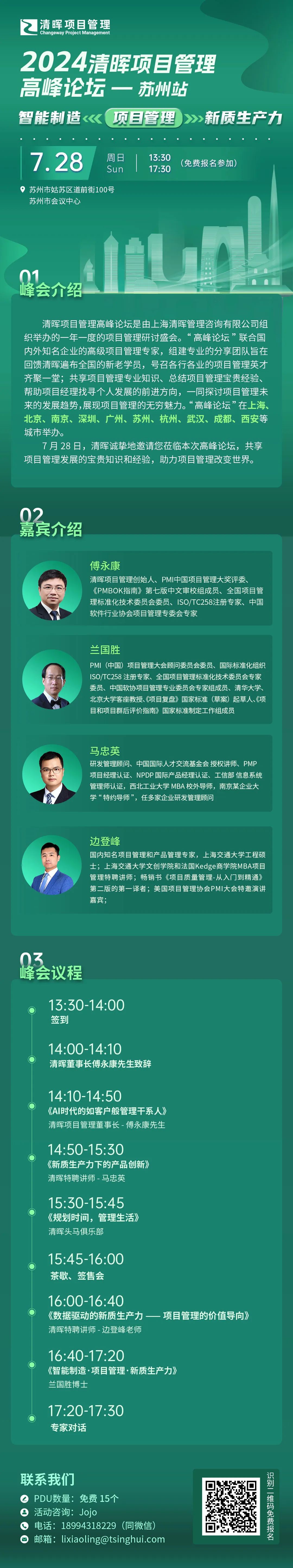 清晖项目管理高峰论坛是由上海清晖管理咨询有限公司组织举办的一年一度的项目管理研讨盛会。“高峰论坛”联合国内外知名企业的高级项目管理专家,组建专业的分享团队旨在回馈清晖遍布全国的新老学员,号召各行各业的项目管理英才齐聚一堂,共享项目管理专业知识、总结项目管理宝贵经验、帮助项目经理找寻个人发展的前进方向,一同探讨项目管理未来的发展趋势,展现项目管理的无穷魅力。“高峰论坛”在上海、北京、南京、深圳、广州、苏州、杭州、武汉、成都、西安等城市举办。