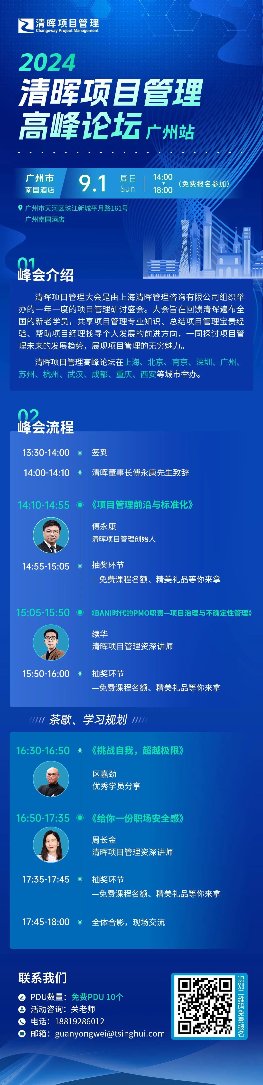 9月1日,清晖诚挚地邀请您莅临本次高峰论坛,共享项目管理发展的宝贵知识和经验,助力项目管理改变世界。