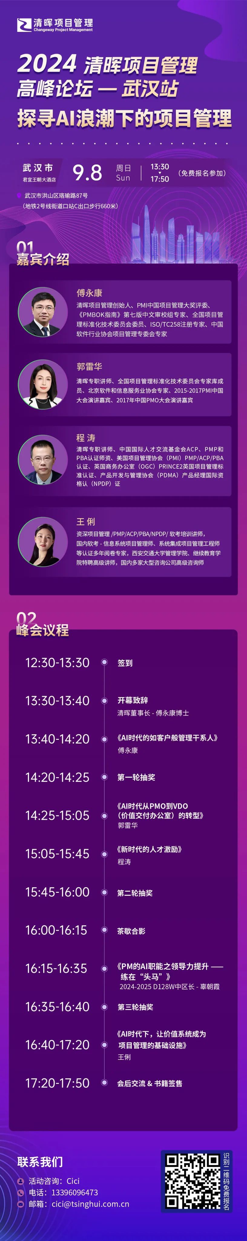 2024年9月8日,清晖诚挚地邀请您莅临武汉高峰论坛,探寻AI浪潮下的项目管理。拥抱AI,成为技术与领导力的双料高手!
