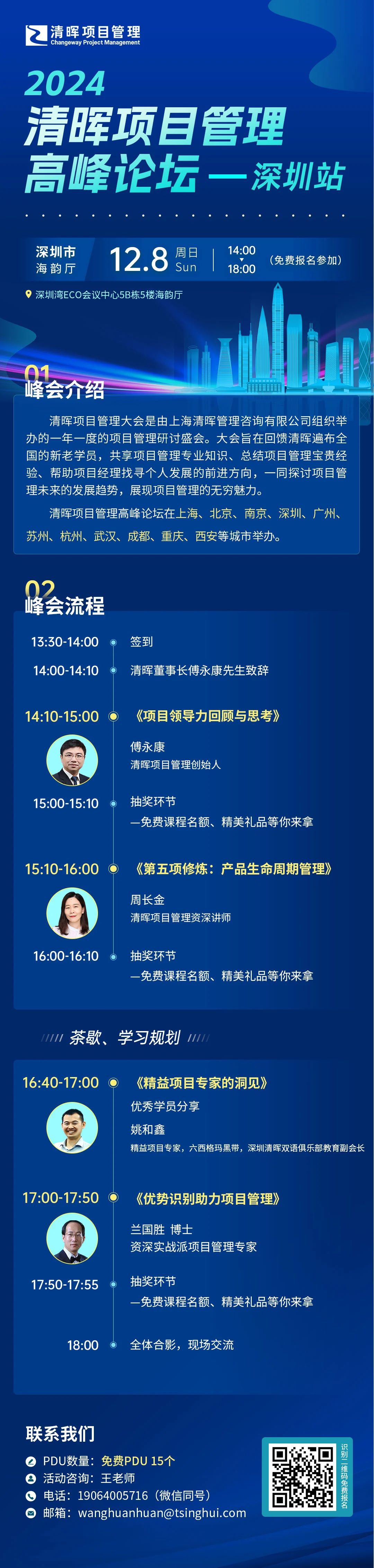 12月8日,清晖诚挚地邀请您莅临本次高峰论坛,共享项目管理发展的宝贵知识和经验,助力项目管理改变世界。