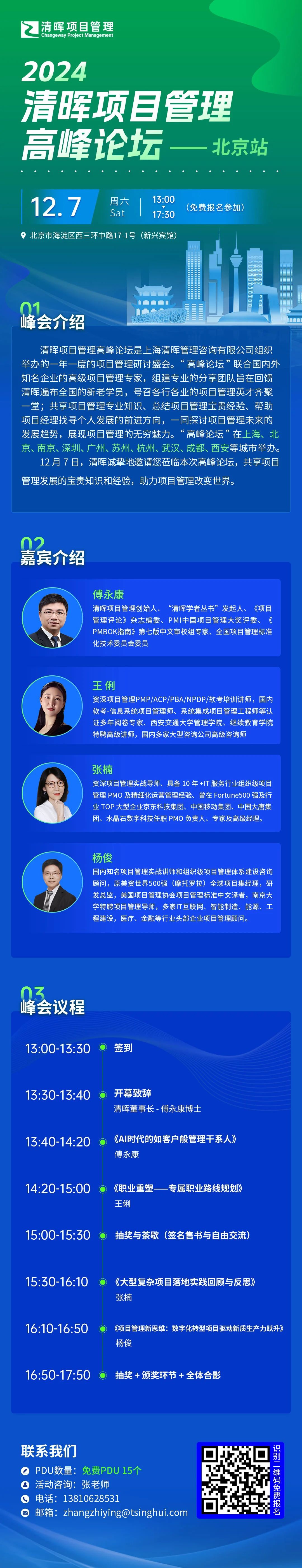 12月7日,清晖诚挚地邀请您莅临本次高峰论坛,共享项目管理发展的宝贵知识和经验,助力项目管理改变世界。