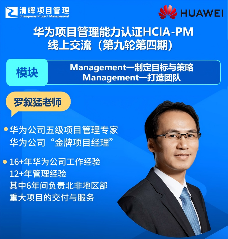 1月28日,华为金牌项目经理,5级项目管理专家的罗叙猛老师将给我们带来“Management——制定目标与策略”的主题课程分享。