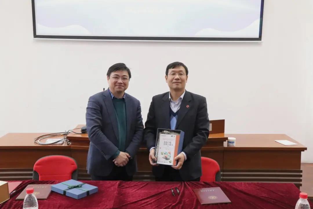 双方发言后签约正式开始,傅永康先生与王皓院长进行奖学金捐赠文件签署,随后王皓院长代表交大机动学院为清晖公司颁发捐赠证书,傅永康先生代表清晖赠与机动学院一套由清晖翻译出版的项目管理书籍。