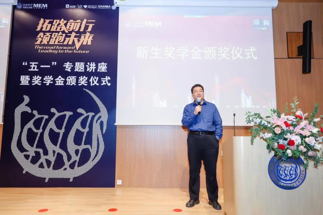 在致辞中,同济大学经济与管理学院党委书记、副院长施骞教授回忆了与清晖傅永康先生相识的经历,介绍了设立同济大学清晖项目管理奖学金的由来,并鼓励学子们持续充电积累,为国家的“两个一百年”奋斗目标做出贡献,努力成为兼具全球视野和社会责任的精英。