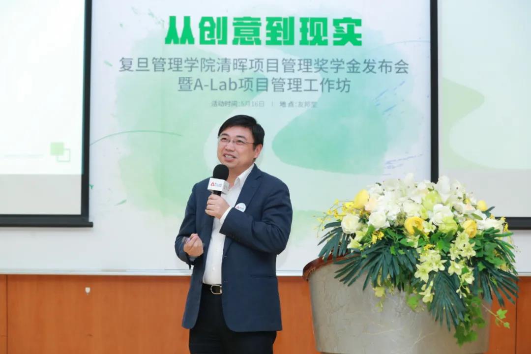 发布仪式结束后,清晖创始人傅永康先生在现场进行了“从创意到现实”的主题分享,讲述了自己对项目管理的经验理解与创业感悟,讲座围绕傅永康先生在复旦管院的求学经历、项目管理的发展演变、清晖创业与发展感悟三大内容展开,通过展示求学期间的学习笔记以及目前的个人学习规划,传递学习之于人生的重要意义,赢得热烈掌声。最后,傅先生介绍了清晖的创业契机及未来构想,并表达对A-Lab团队的期望。