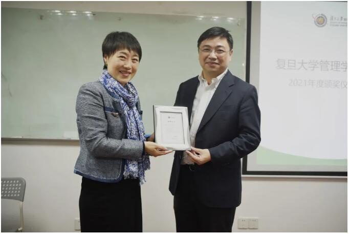 随后,A-Lab项目执行团队代表俞昉为大家回顾了复旦管院A-Lab创行实验室的发展历程,阐述了对于复旦MBA在价值创造上所做的工作尝试,并强调鼓励同学们更多去思考与他人之间的关系,主动探索、创新和赋能的核心观念,希望通过这段学习旅程能帮助大家了解内心的力量。并在汇报最后感谢清晖奖学金对A-Lab项目的大力支持,对2021年度的获奖同学表示祝贺。