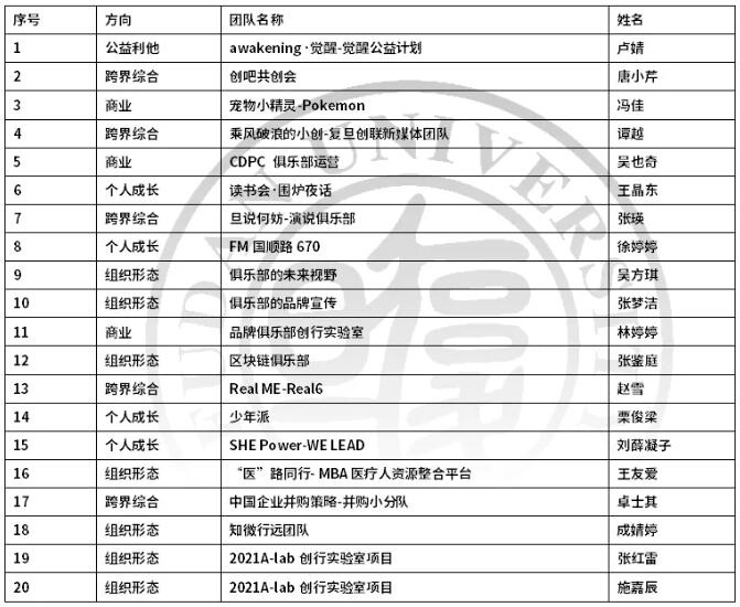 此次活动是清晖高校奖学金事业的又一收获,未来清晖将继续加强与高校对话,担负社会责任,加深高校学生对于项目管理的认识和理解。清晖祝愿复旦A-Lab以及所有清晖奖学金获得者在各自的行业领域更上一层楼,相信通过清晖与复旦MBA的紧密合作,未来会有更多的优秀者脱颖而出。附:2021年度复旦大学管理学院清晖项目管理奖学金获奖名单