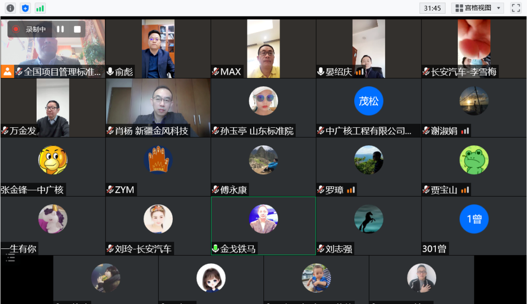 3月29日上午,由项目管理标委会组织的《全国项目管理标准体系建设指南》(以下简称“体系指南”)征求意见稿编写研讨会,以视频方式召开。来自中国国际人才交流基金会万金发主任,中国航空综合技术研究所曾相戈研究员,北京金风科创风电设备有限公司肖杨副院长,上海市质量与标准化研究院晏绍庆总工,山东省标准化研究院谢淑娟研究员,华为科技技术公司孙虎高级工程师,上海清晖管理咨询有限公司傅永康董事长,中广核工程有限公司罗璋处长,重庆长安汽车股份有限公司李雪梅经理等多位专家参会。会前,西北工业大学欧立雄教授和山东大学丁荣贵教授,以书面形式反馈了他们对体系指南的修改建议。项目管理标委会秘书长俞彪主持了会议。