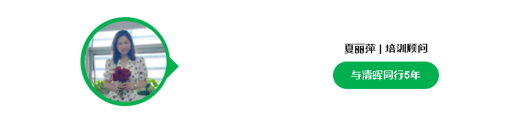 对于我自己的工作,我最看重的是学习能力、沟通能力以及足够的热爱,把这些带给学员和同事,在这个过程中我获得了成就感和学员的真诚。清晖十五周年,祝福清晖越来越好,做大做强,前景灿烂。