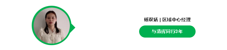 我进入清晖已经快三年了,我眼中的清晖是一家很有温度的公司,注重对员工个人能力的培养,我最看中的能力是沟通能力和专业能力,有助于我快速了解学员真正的需求,帮助学员解决问题。