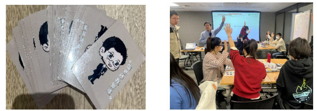 杨老师给大家准备了积分扑克牌,课堂纪律好、积极发言、表现好的学员给予抽牌,最后积分最高的组可得神秘大奖。