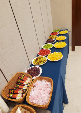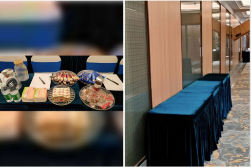 当天早上天气晴空万里,班主任是提前一天去教室布场,配合酒店进行环境的消杀工作。准备好单独的瓶装水,测试好相关的设备,准备好易拉宝以及挂好横幅,同时也提前准备好相应的茶歇。