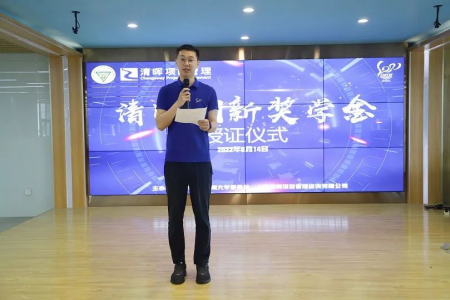 2022年度清晖创新奖学金获奖同学代表杨清元同学在发言中表示,作为第一届清晖创新奖学金的获得者,能够得到清晖公司与优秀学长的支持与认可,非常开心与激动。并将心系母校的傅永康学长作为榜样,在未来的人生道路中继续严格要求自己,结合好技术优势与管理能力,不断创新,践行止于至善的东大精神,争取更大的进步。