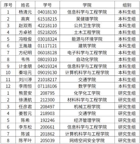 附:2022年度东南大学清晖创新奖学金获奖名单