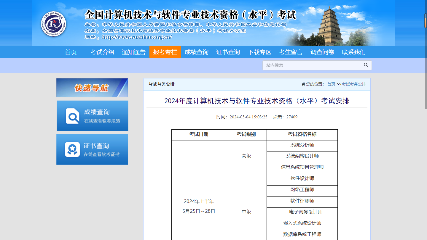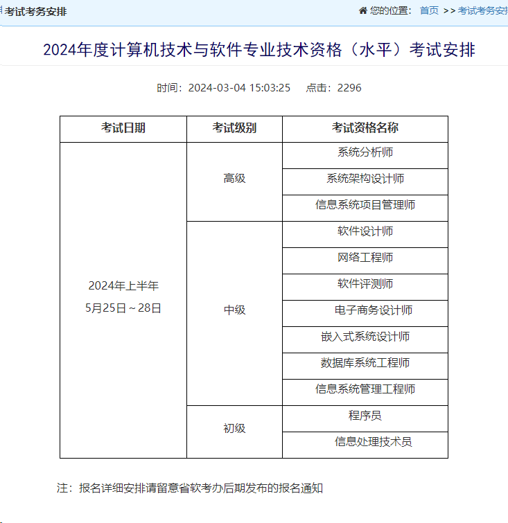 目前中国计算机技术职业资格网还未发布正式通知,陕西软考办官网已经出了安排,其他地区安排可等待各省具体通知。
