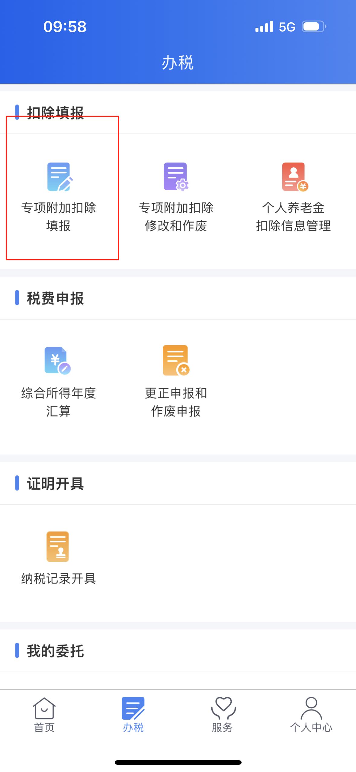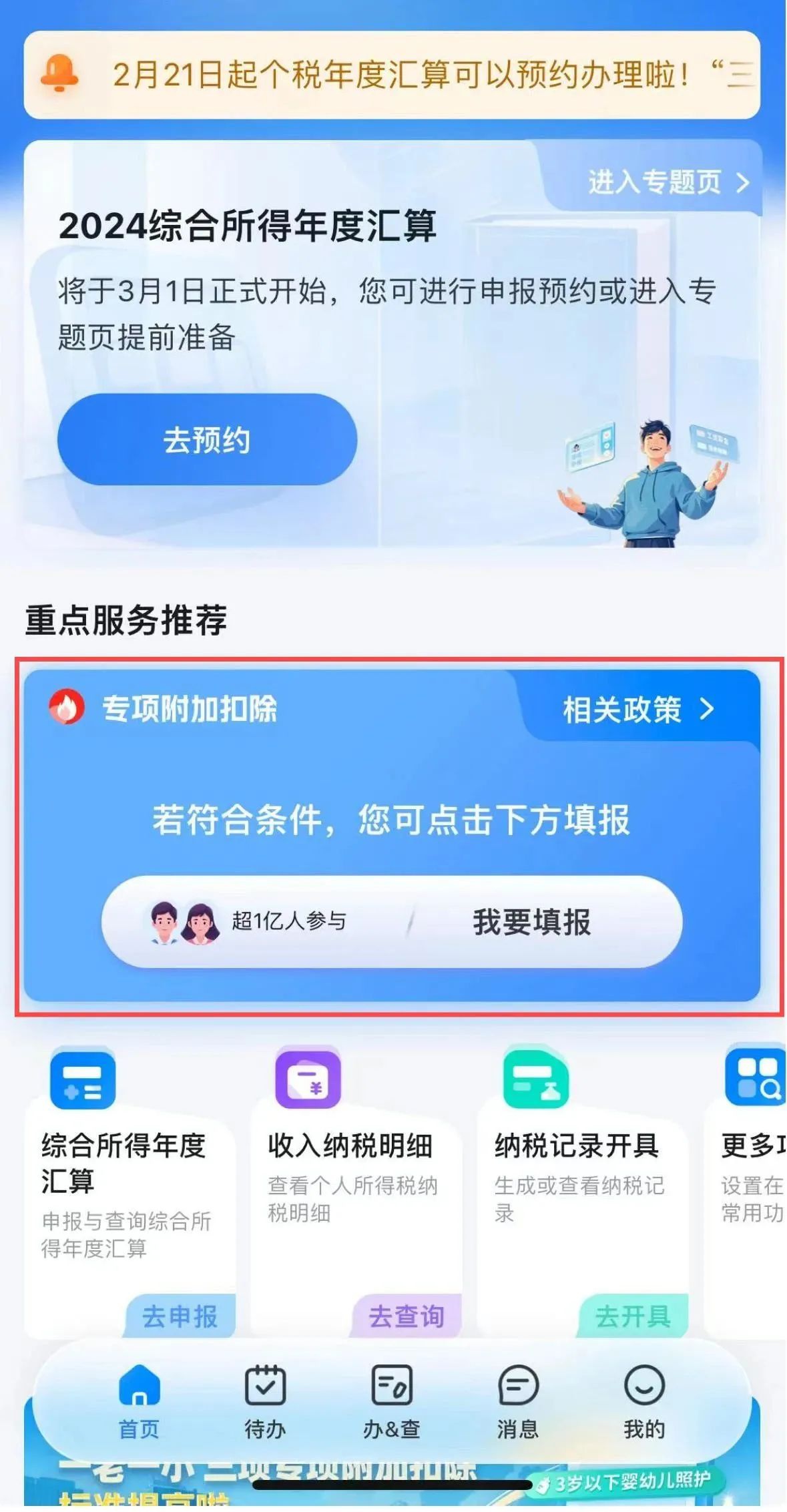 打开“个人所得税”APP——我要办税——专项附加扣除填报。