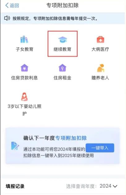 今年的个税专项附加扣除信息已经开始确认,时间为2025年3月1日至6月30日。继续教育专项扣除政策有一类,是针对于今年参加职业继续教育的人,只要你已经取得了相关职业资格证书,就可以凭借证书抵扣3600元个人税。