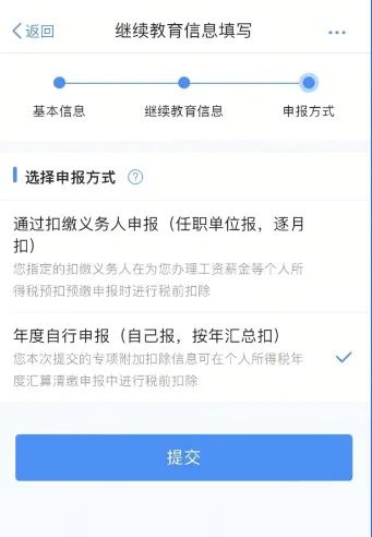 选择申报方式(通过扣缴义务人申报/综合所得年度自行申报),即可完成申报。