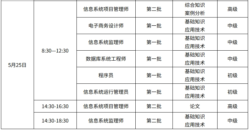 信息系统项目管理师、信息系统监理师2个资格考试因报考人数较多,为确保报考人员均有机位可考,采取分批次实施的办法,请各位考生及时关注当地计算机软件资格考试办公室通知,按准考证上的时间、地点和批次参加考试,也请广大考生对此予以理解和支持。