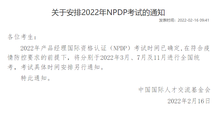 以上就是关于中国国际交流基金会对2022年NPDP考试时间的安排,请各位学员及时关注考试咨询,合理安排时间,提前准备。