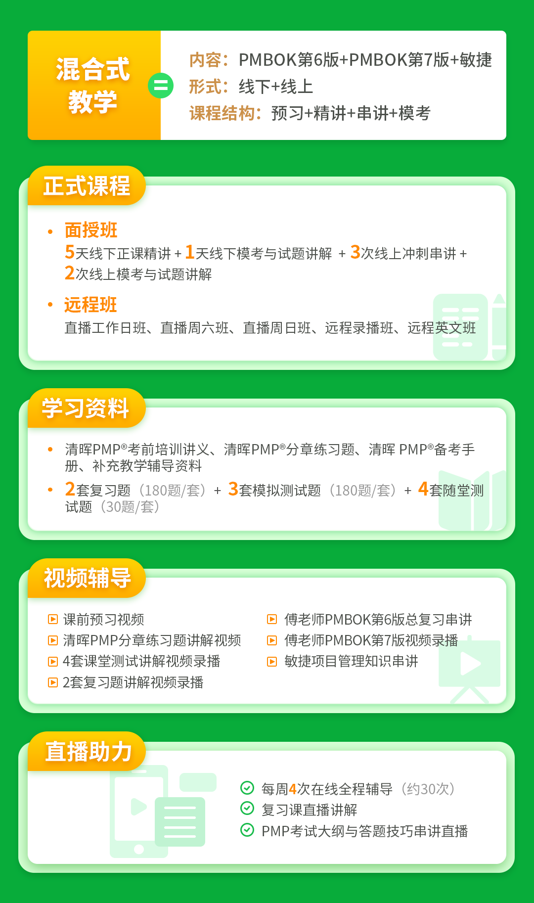 以上就是清晖2024年在各个城市开设的PMP线下课程时间安排,如果没有你所在的城市也欢迎报名清晖远程PMP培训班,有专门班主任全程督学,杜绝远程课程常遇到的拖延症、不能坚持学习等问题。如需获取各城市详细开课地址欢迎联系清晖。