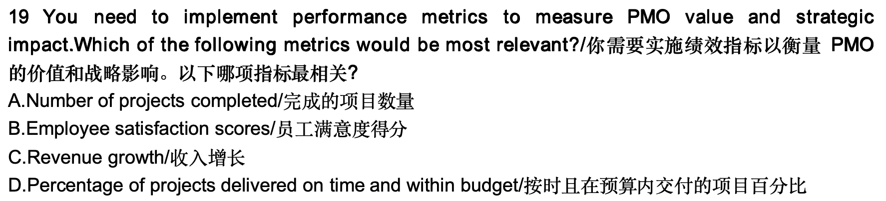 PMOCP 正式考题以场景化案例呈现,备考中养成了“理论映射实践”的习惯:将各域知识点与工作中的具体问题绑定,让抽象概念落地为可操作的解决方案。