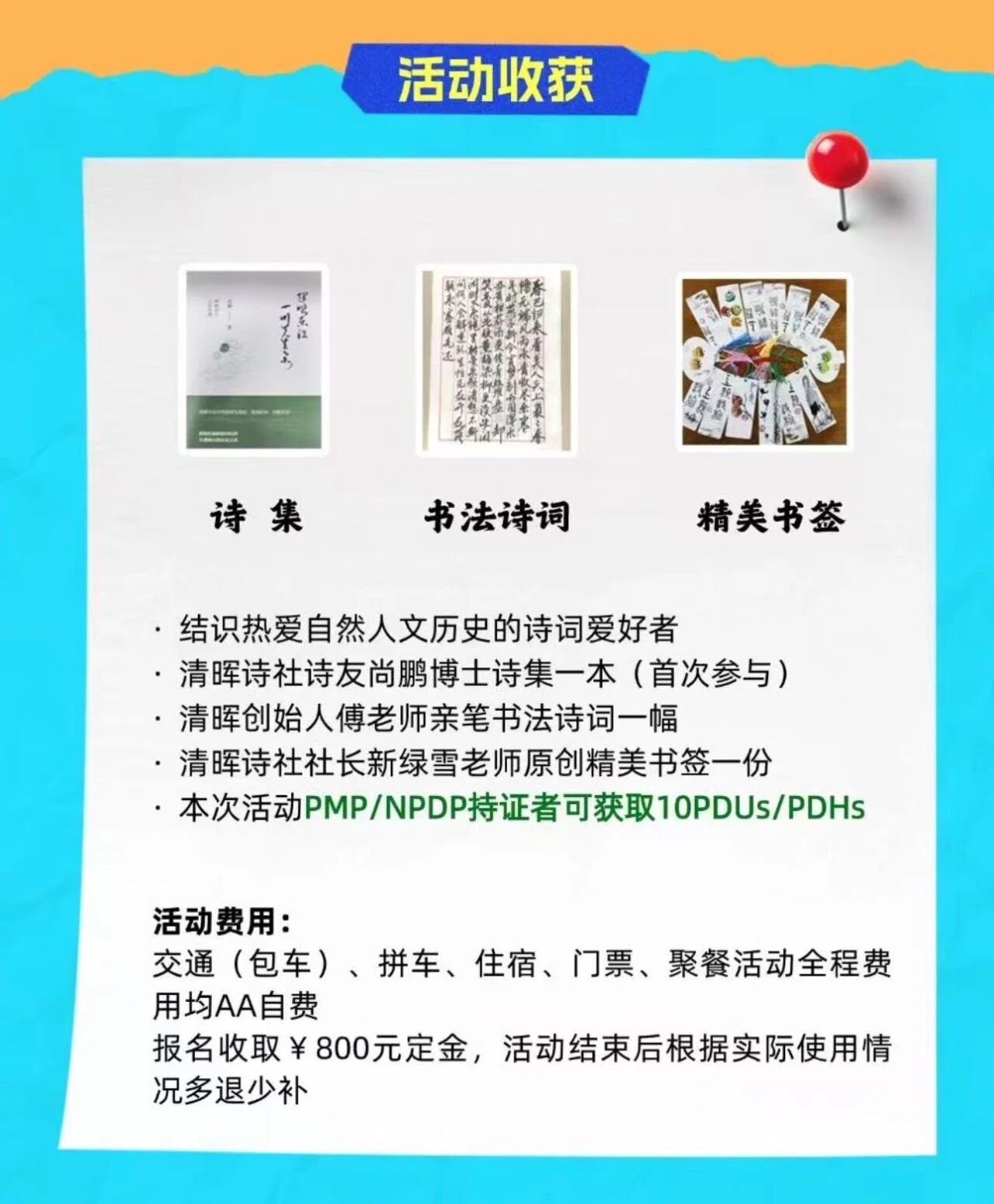 本次诗旅之行将同清晖创始人傅永康博士与清晖诗社社长新绿雪老师全程共游,沿途且行且摄,诗相伴,景相随,山水清晖 ,你我同行!