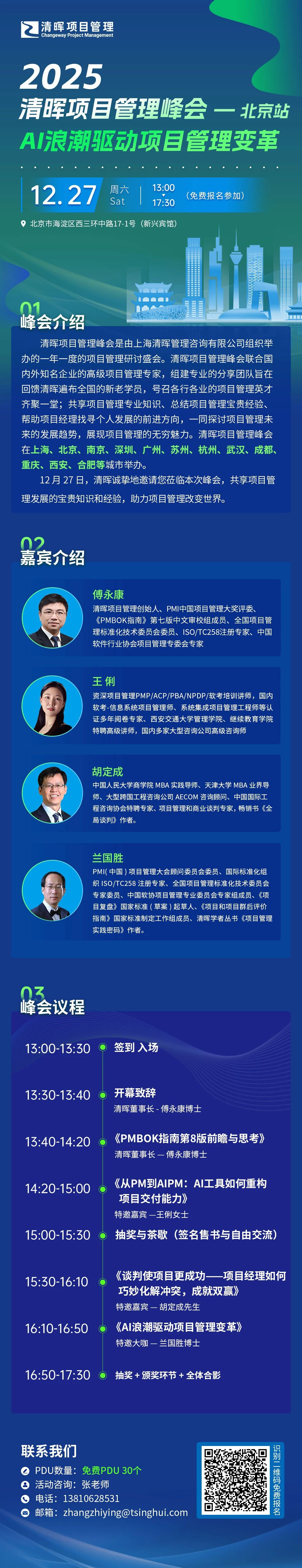 清晖项目管理峰会是由上海清晖管理咨询有限公司组织举办的一年一度的项目管理研讨盛会。清晖项目管理峰会联合国内外知名企业的高级项目管理专家,组建专业的分享团队旨在回馈清晖遍布全国的新老学员,号召各行各业的项目管理英才齐聚一堂;共享项目管理专业知识、总结项目管理宝贵经验、帮助项目经理找寻个人发展的前进方向,一同探讨项目管理未来的发展趋势,展现项目管理的无穷魅力。清晖项目管理峰会在上海、北京、南京、深圳、广州、苏州、杭州、武汉、成都、重庆、西安、合肥等城市举办。