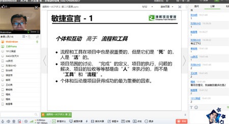 另外,清晖的远程课程采用在线直播+回放的形式,学员有问题可以随时举手提问,与讲师面对面,即时解决疑难杂点,让学员透透彻彻的明白ACP知识体系框架。