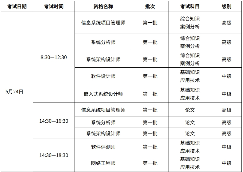 信息系统项目管理师、信息系统监理师2个资格考试因报考人数较多,为确保报考人员均有机位可考,采取分批次实施的办法,请各位考生及时关注当地计算机软件资格考试办公室通知,按准考证上的时间、地点和批次参加考试,也请广大考生对此予以理解和支持。