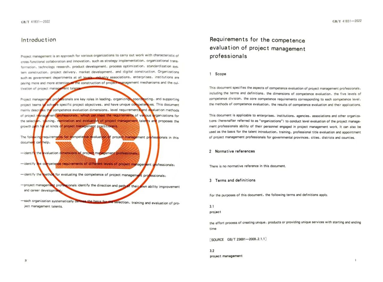 近期,由全国项目管理标准化技术委员会(TC343)归口管理的GB/T 41831-2022《项目管理专业人员能力评价要求》外文版国家标准正式发布实施。这一标准的出台,在国内外项目管理领域引起广泛关注,为项目管理专业人员能力评价提供了重要依据,也为我国项目管理走向国际奠定了坚实基础。