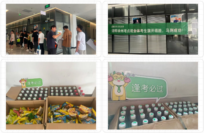考试当日,身穿清晖绿文化衫的送考小分队奔赴各个考试场地,提前做好应援准备。在考场外布置考试应援点,免费提供“能量补充包”给有需要的学员,为学员补充能量,帮助大家在考试中有一个好的状态。