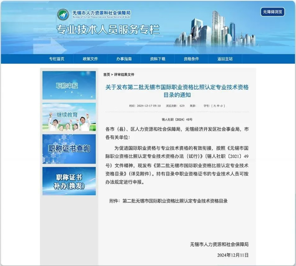 为促进国际职业资格与专业技术资格的有效衔接,无锡市人力资源和社会保障局发布《第二批无锡市国际职业资格比照认定专业技术资格目录》。其中,由PMI颁发的项目管理专业人士认证(PMP®)可按《无锡市国际职业资格比照认定专业技术资格办法(试行)》(锡人社职〔2021〕49号)申报中级职称。