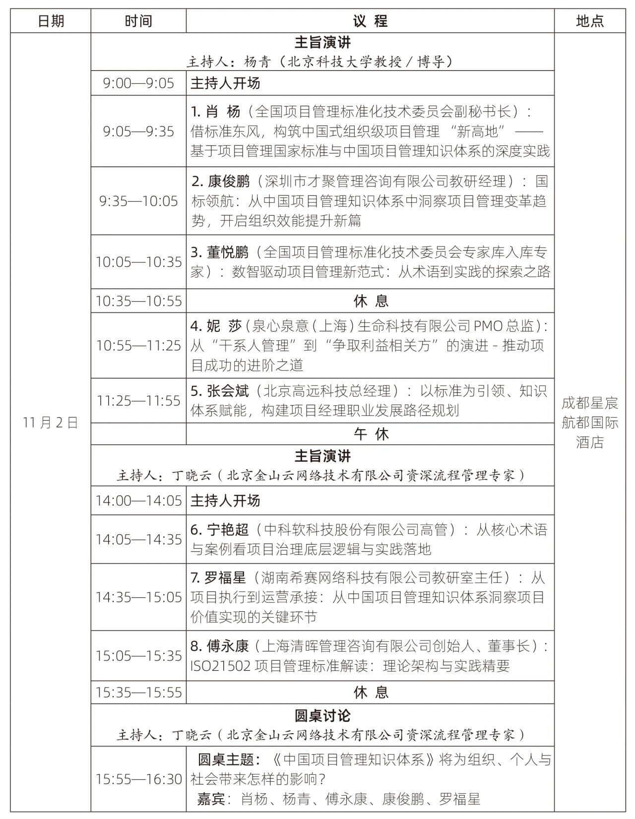 以下是项目管理知识体系解析分会场的出席嘉宾和具体议程——