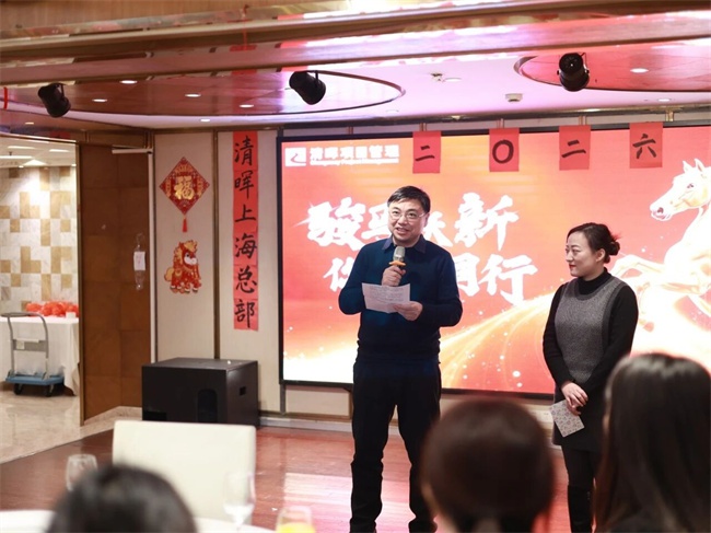 当时光的指针拨向二〇二六,在这辞旧迎新的璀璨时刻,以“骏马跃新,你我同行”为主题的清晖项目管理上海总部新春联欢晚会于昨日在黄河路乾隆美食餐厅举行。