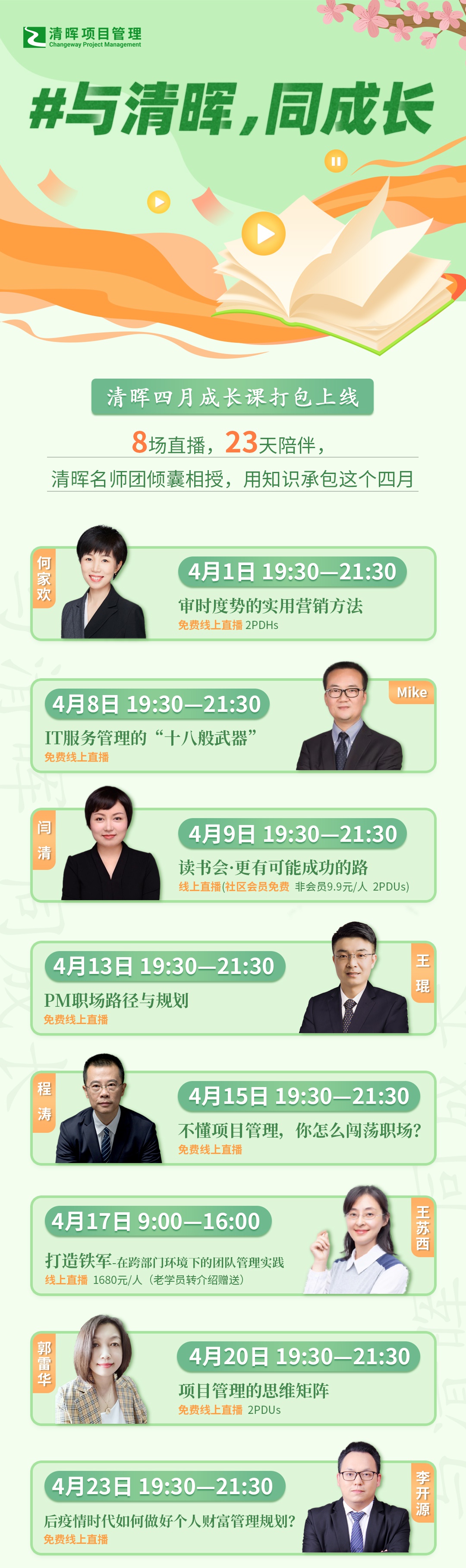 如果你也和小美一样,处于职场困境中,想要发现问题、解决问题......这个四月,我们计划了 8 场直播,用 23 天陪伴,和你们一起探讨、学习和成长。