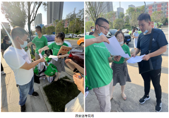 其中苏州、无锡、常州及临时考点南通、徐州作为中国国际人才交流基金会授权PMP考试中心,送考小分队在考试前一天集结,协助布置考场,搭建清晖加油站。为学员提供物资补给、防疫应急物品等。