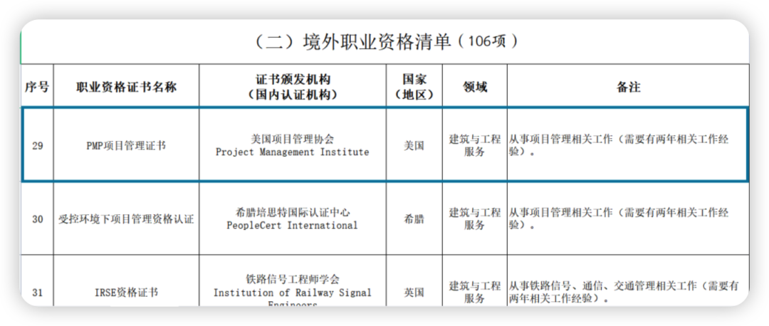 很多小伙伴都听说过,北京市人力资源和社会保障局、北京市人才工作局发布了《北京市境外职业资格认可目录(2.0版)》的通知,PMP项目管理专业人士资格认证与其余109项国际认证一同入选。