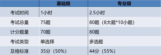 基础级与专业级两个级别考试方向不同,基础级偏重于考核基础知识,专业级偏重于考核实践能力。